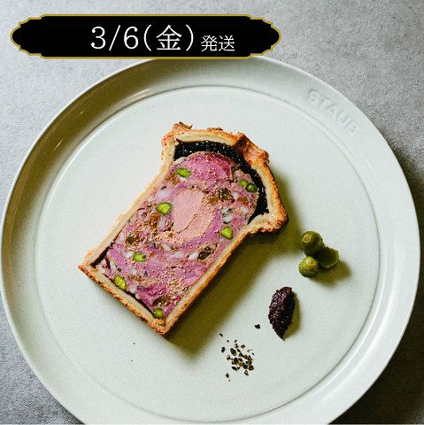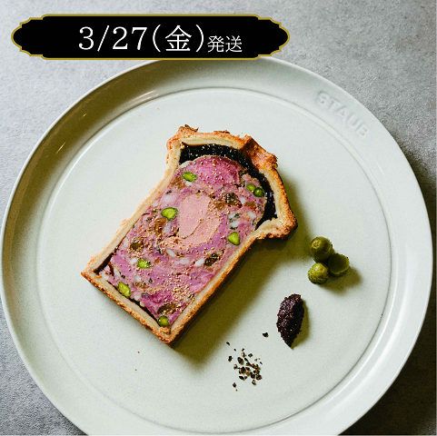 他の画像を見る 予約商品 オンライン対応 冷蔵品 お届け指定不可 予約商品 【3/27(金)発送限定】鴨とフォアグラのパテ・クルート ¥ 3,500 税込 カートに入れる こちらは予約商品です 予約受付期間 2026/02/24 12:00 〜 2026/03/24 23:59
