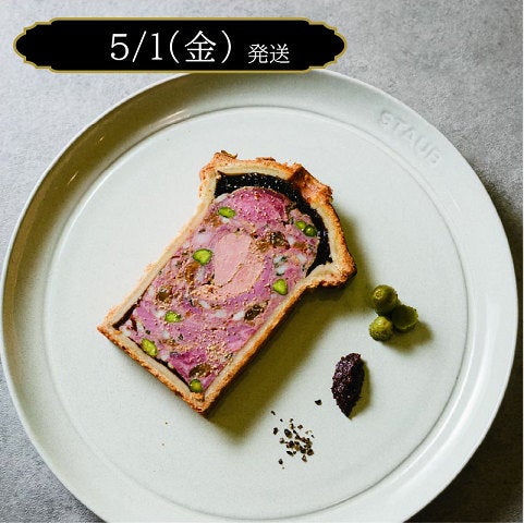 シェフ福田耕平の世界を代表するスペシャリテ。美しい断面とサクッと香ばしいクルート(パイ生地)の食感、深みある重厚な味わいのファルスの絶妙なバランスをお楽しみください。