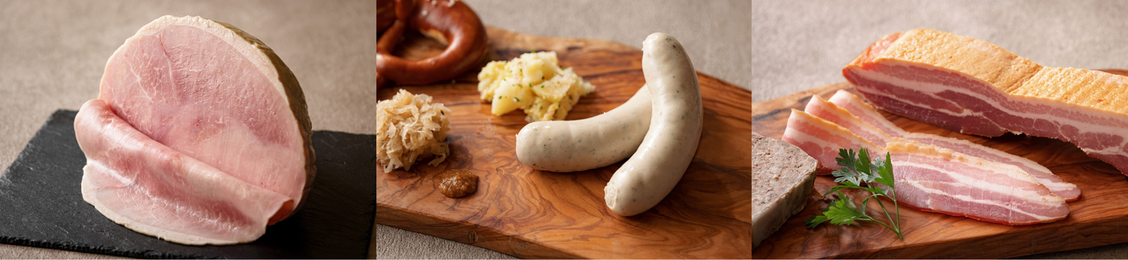 メッツゲライササキのハム・ソーセージは、Metzgerei Weberで3年間修行し国家資格[Geselle]を取得した3人の技術者による本場・本物の南ドイツの品質と美味しさを再現します。