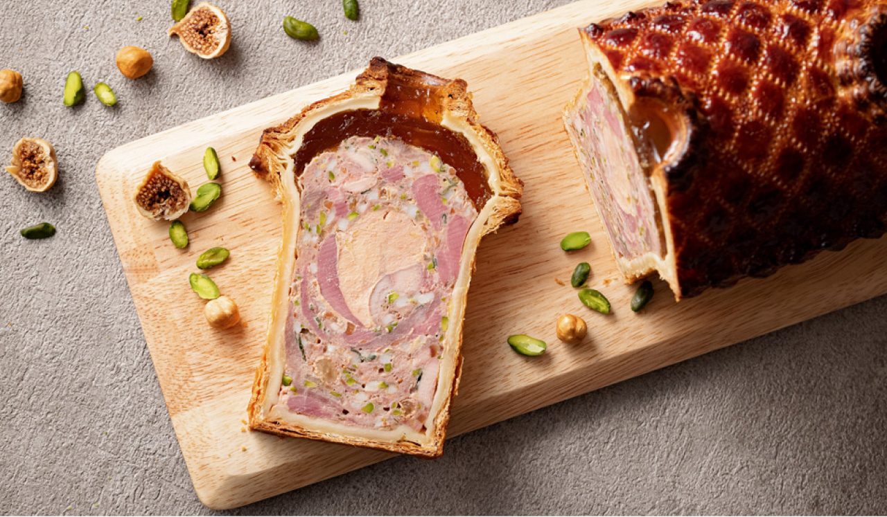 Charcuterie(シャルキュトリ)はフランス庶民の食文化。お店には魅力的で美味しそうな食材がたくさん並びます。シャルキュトリの人気メニューのひとつが「パテ・クルート」。