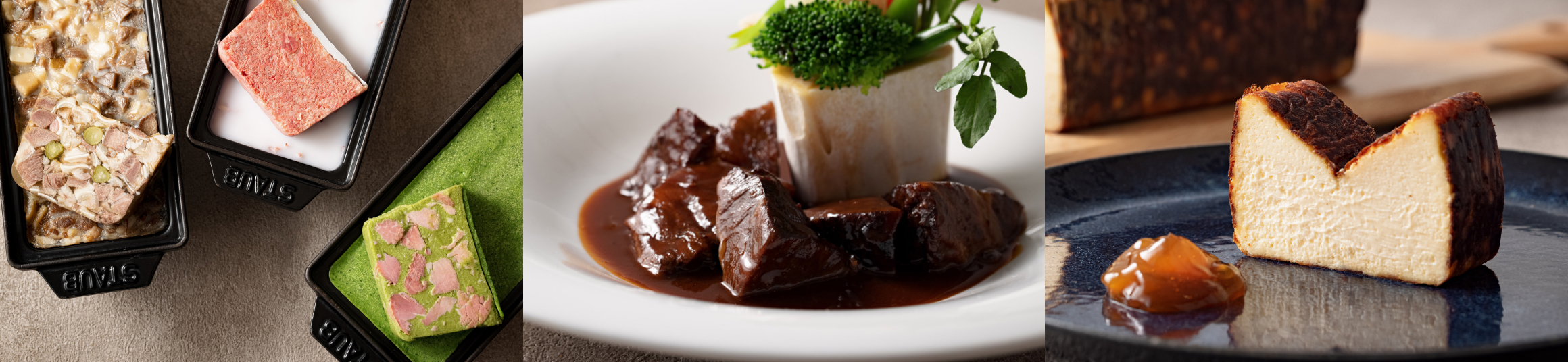 中でも、豊かな食の感性を持ち、「シャルキュトリ・・豚肉惣菜店」が庶民に根付いているフランスの食文化を私たちは深く追求しています。シャルキュティエ(シャルキュトリ職人)のレシピをベースに、一流のシェフがフランスの食肉加工品の美味しさを再現します。