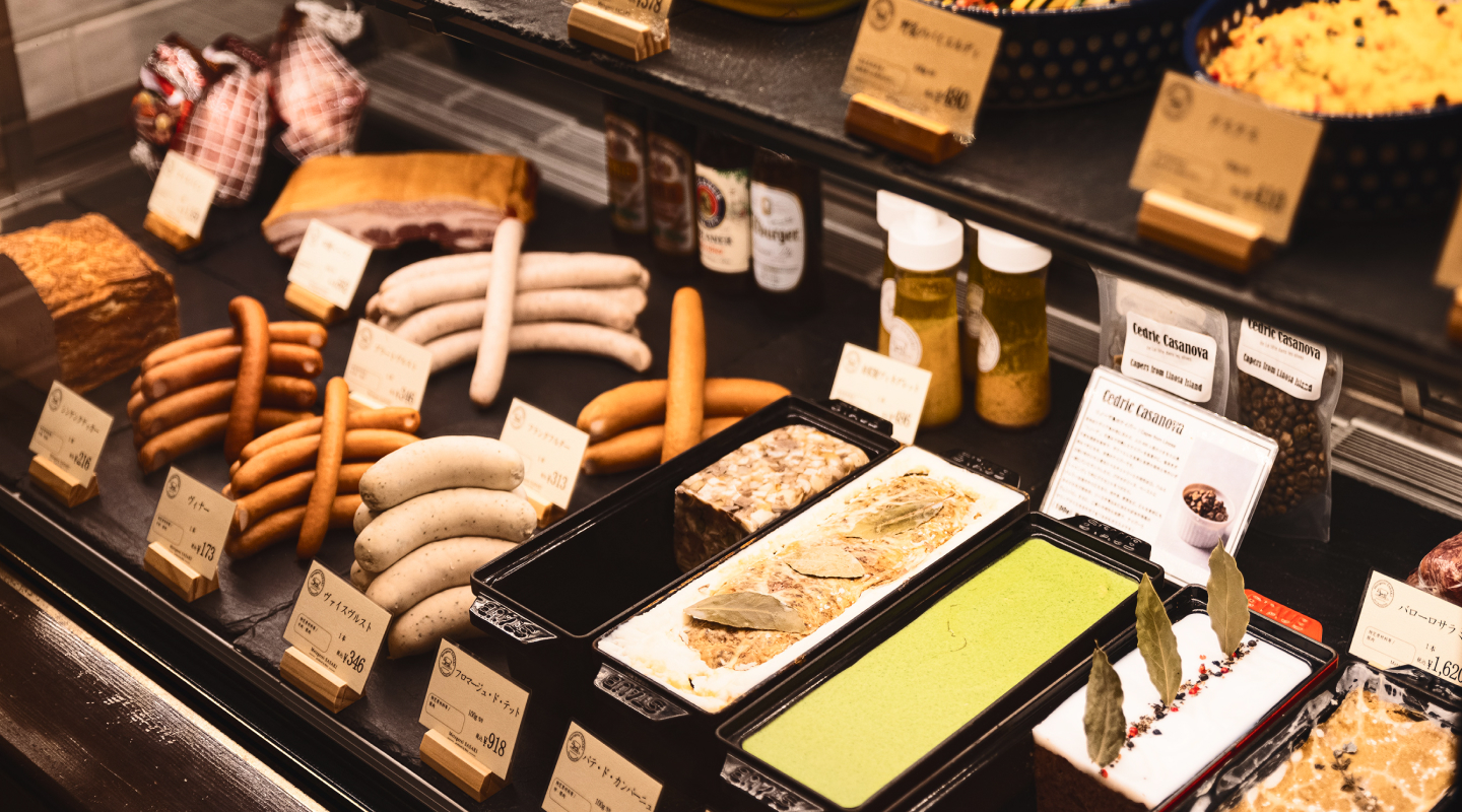 シンケン(ハム)ヴルスト(ソーセージ)ファインコスト(味付け肉)等々、ドイツの食生活には欠かせない人々の暮らしに根づく大切なお店となっています。